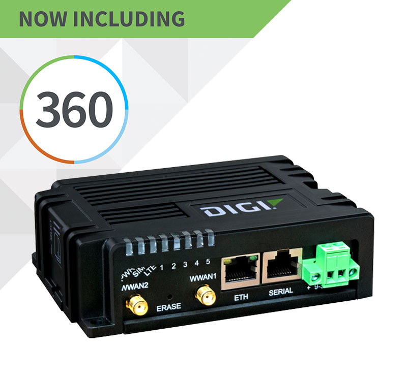 Digi IX10 is a full-featured cellular router built for trouble-free reliability over a long service life — easy to deploy and centrally managed via Digi Remote Manager (Digi RM), which is included in your Digi 360 solution.