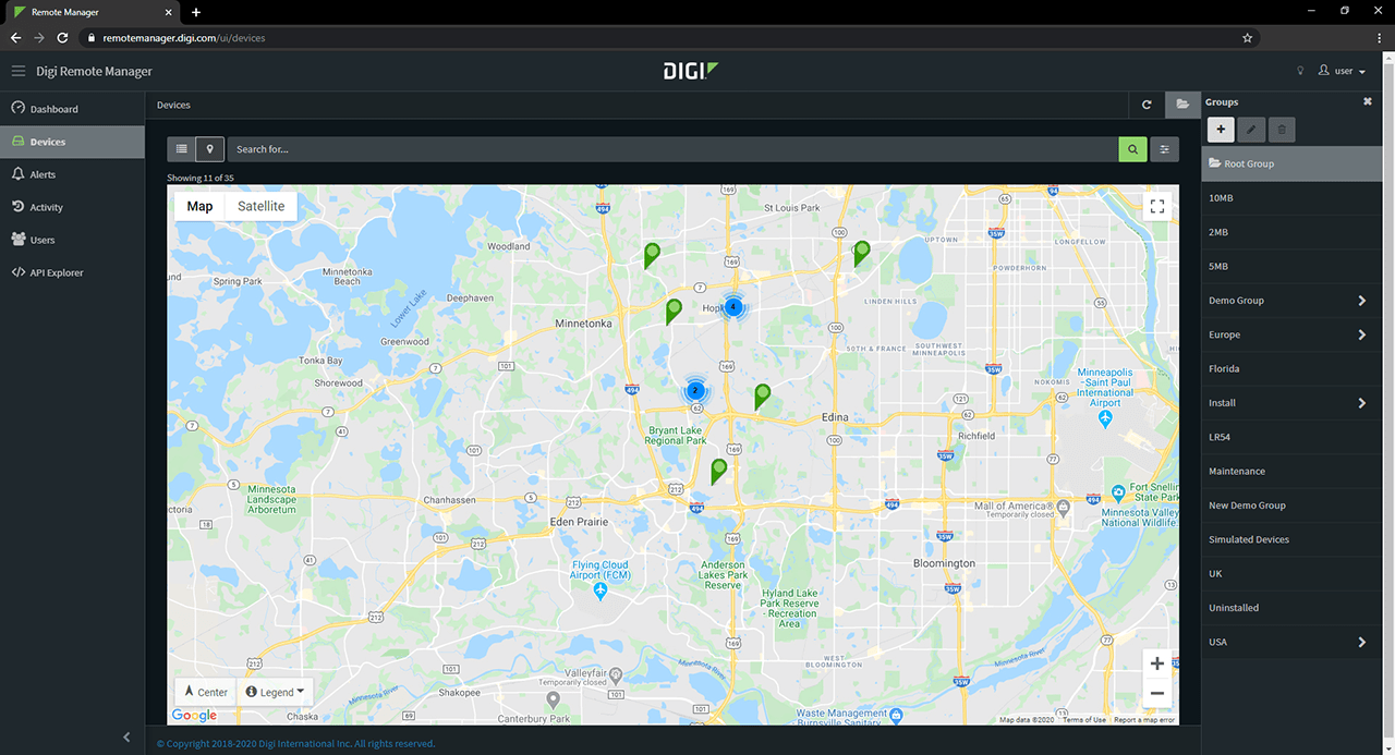 Mapping See the location of your devices in real time in the Devices page in Digi RM.