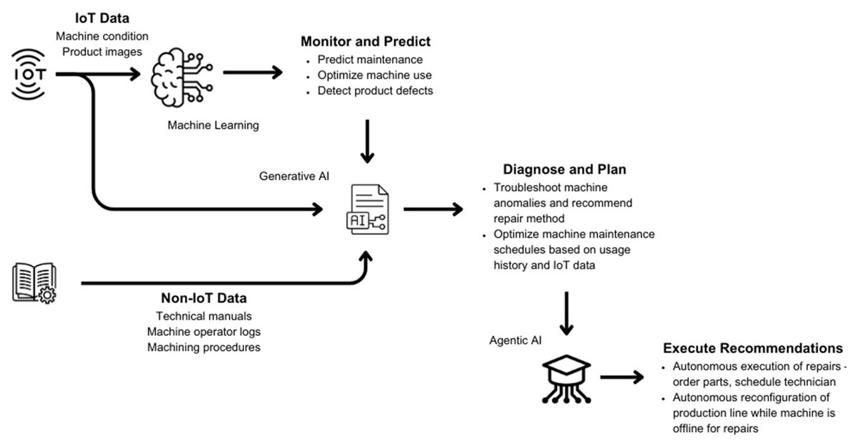 Generative AI has expanded these capabilities further by combining sensor data, operational logs, and human inputs to diagnose anomalies, plan optimization strategies, and recommend actions. Emerging agentic AI approaches aim to move beyond recommendations to orchestrating and executing operational workflows.